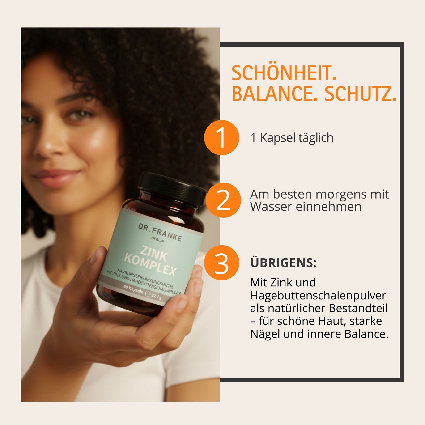 Eine normale Haut- und Haarfunktion durch Zink und Biotin.